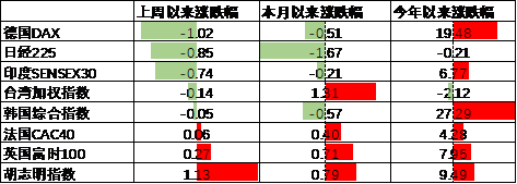 其他海外市场方面,德国市场跌1.02%,表现最差;越南市场涨1.13%,表现最好。发达市场较新兴市场表现占优。