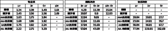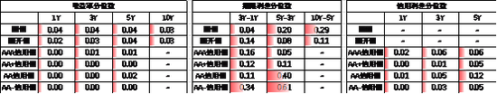 期限利差方面,上周利差大体收窄,30年国债利率维持1.85,大部分券种期限利差维持较低分位数区间。