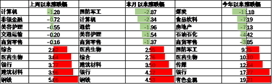 行业方面,上周31个申万一级行业中25个上涨,6个下跌。其中,此前表现较好的成长板块有所回落,其中计算机、非银金融、美容护理及商贸零售分别跌1.28%至0.16%不等,跌幅居前。另一方面,价值板块则出现了一定程度的修复,其中钢铁、建筑材料及银行分别涨5.06%、3.96%及3.77%,涨幅居前。
